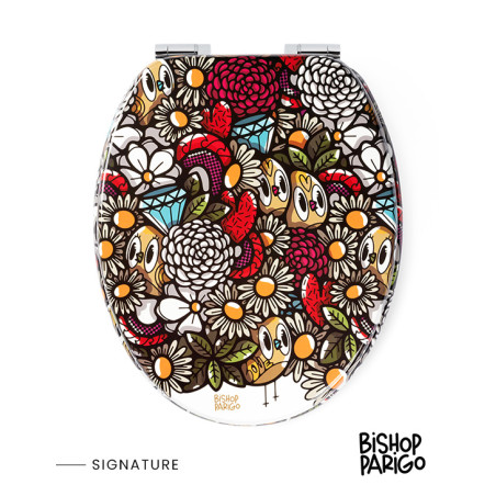 "BirdyFlowers" ist das Ergebnis einer einzigartigen Zusammenarbeit von TohaaDesign und dem Pariser Künstler BishopParigo. Der WC-Sitz zeichnet sich durch einzigartige und farbenfrohe Motive aus. Ein ausgefallenes Design, das es nirgendwo sonst gibt und das somit perfekt geeignet ist, um Ihr WC in einen ganz neuen Ort zu verwandeln und, um Kunstliebhaber zu begeistern.