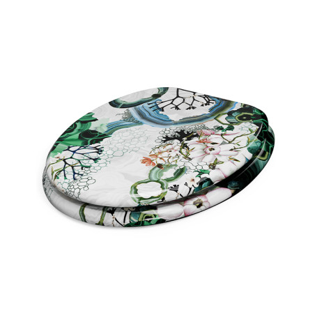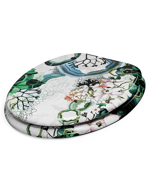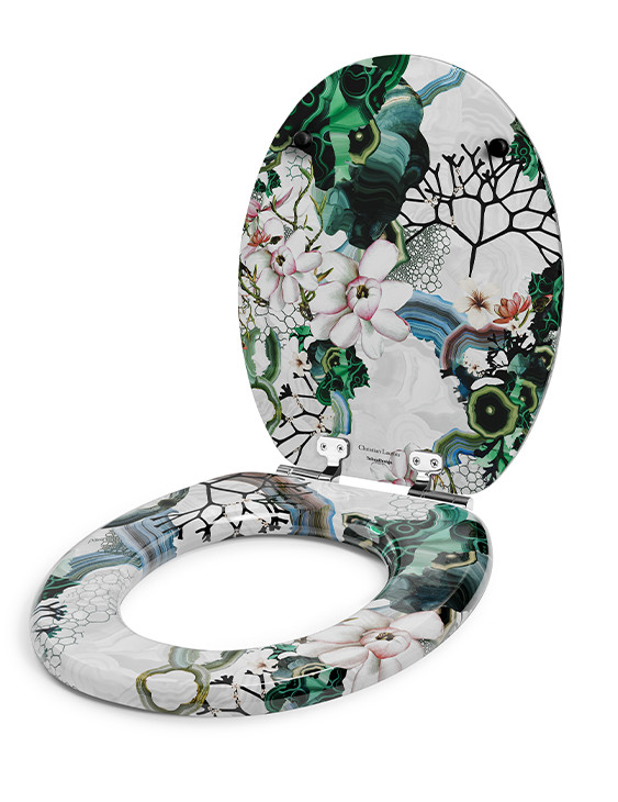 Entstanden aus der Zusammenarbeit zwischen der Maison Christian Lacroix und TohaaDesign, vereint der WC-Sitz "Algae Bloom" auf harmonische Weise kostbare Mineralien und Meeresflora. So entsteht eine neue Welt, in der Malachit schimmernde Moiré-Reflexe aufweist und Algen die feinen Muster der zartesten Spitzen nachahmen, um Ihrem Badezimmer einen Hauch von Eleganz und Raffinesse zu verleihen.