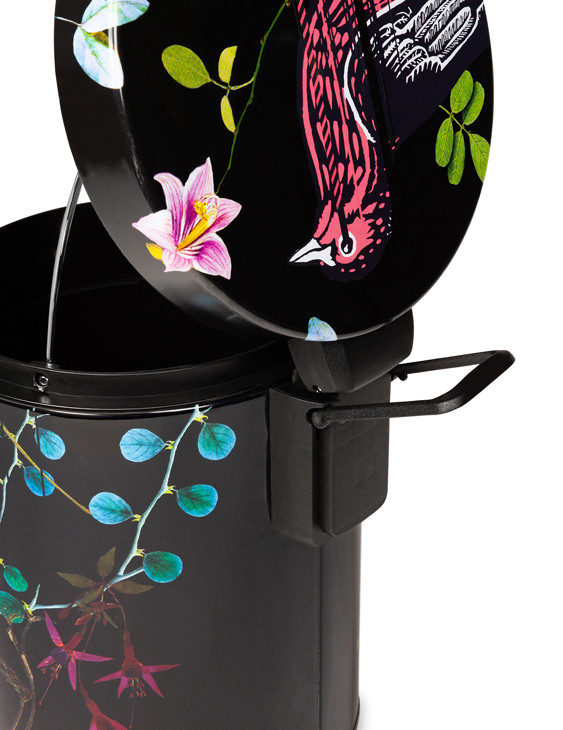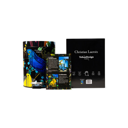 Christian Lacroix se ha asociado con TohaaDesign para ofrecerte una papelera de baño única. Este emblemático diseño de la prestigiosa Maison Lacroix "Birds Sinfonia", con su intenso fondo negro, cobra vida con una bandada de pájaros de brillante plumaje que trazan los acordes de su propio canto.