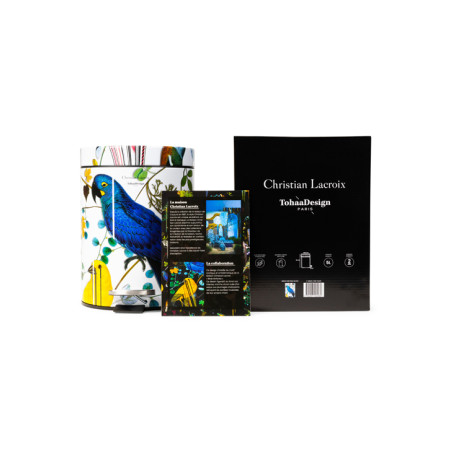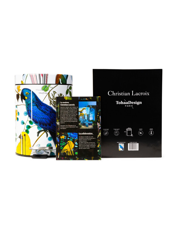 Nacida de una colaboración exclusiva entre la prestigiosa Maison Christian Lacroix y TohaaDesign, esta papelera de baño aportará una energía agradable y luminosa a tu hogar. Sobre fondo blanco, presenta el famoso diseño "Birds Sinfonia", emblemático de la Maison Christian Lacroix. ¡Un toque de elegancia y majestuosidad para una decoración única!