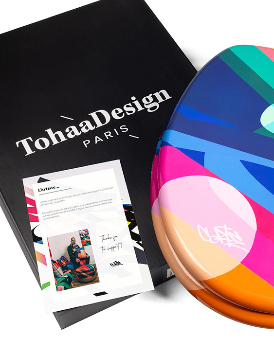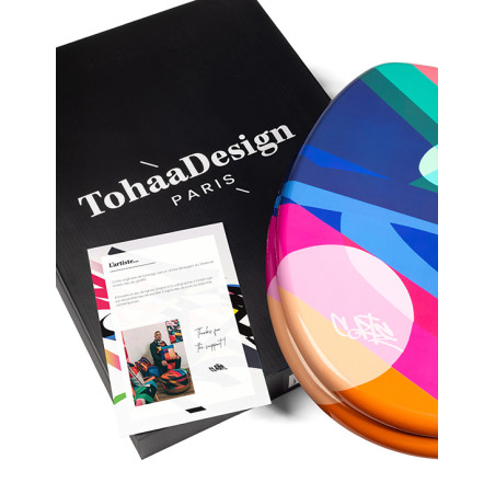Cette magnifique création "Two Suns" signée par le street artiste Chilien Camilo Ortega alias CORTE réalisée pour TohaaDesign est une exclusivité. Véritable pièce d'art, cet abattant de toilette introduit le street-art dans vos espaces de vie.