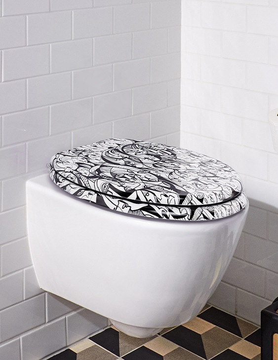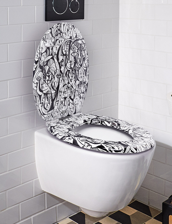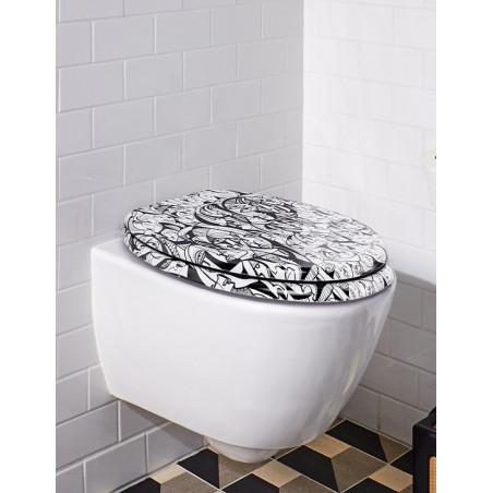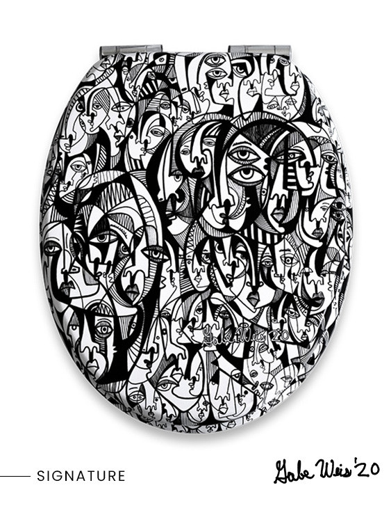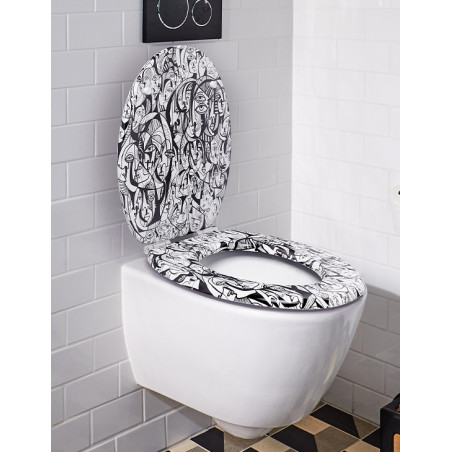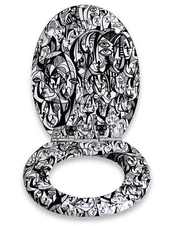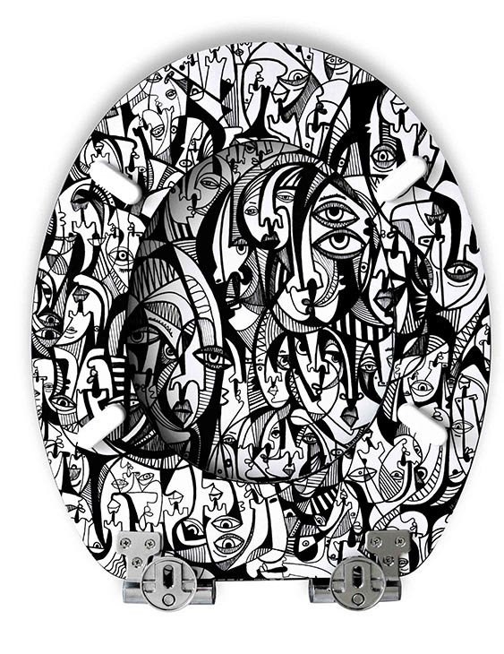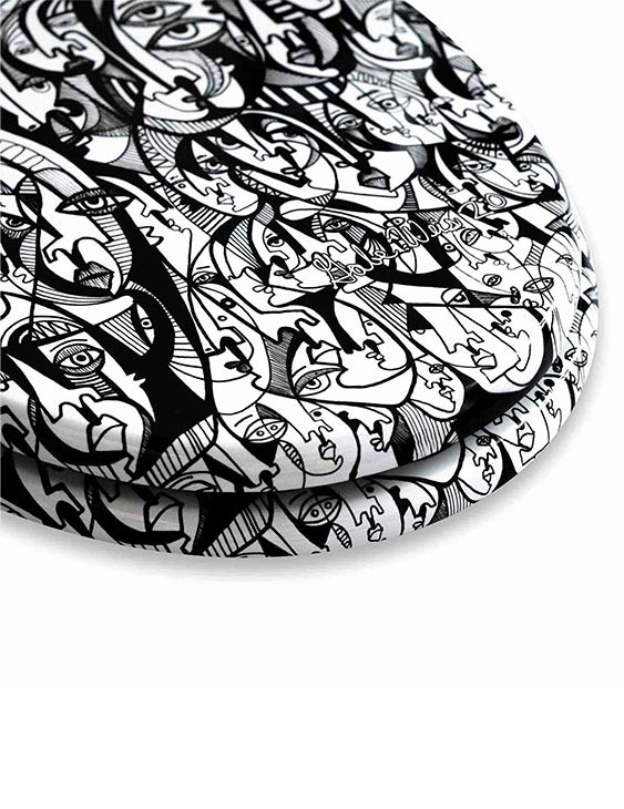 Cet abattant wc design et arty signé Gabe Weis invite le cubisme et l'art de rue au cœur de vos toilettes. Artiste californien, Gabe Weis puise son inspiration dans le mouvement cubiste européen, ses nombreux voyages, et le street art. Son œuvre "Interrelated" dense se compose essentiellement d’autoportraits, qui flirtent avec une abstraction digne de Victor Brauner.