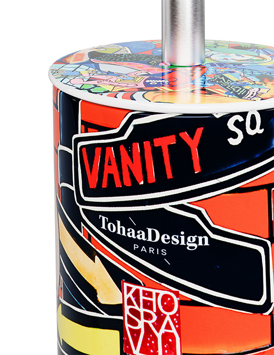 Ce modèle de brosse original haut en couleur nous transporte dans l'univers pop et dynamique du talentueux Guive Khosravi. "Vanity Fair" qu'il décline pour TohaaDesign, nous fait vivre une explosion de tonalités flamboyantes et de graphismes originaux.