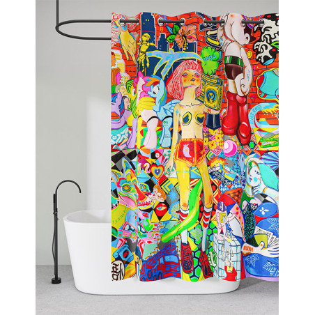 Signé par l’artiste contemporain Guive Khosravi, ce rideau de douche "Vanity Fair " illuminera votre salle de bains. Ses couleurs chatoyantes et ses formes dynamiques lui confèrent un style unique, d’inspiration Pop-Art.