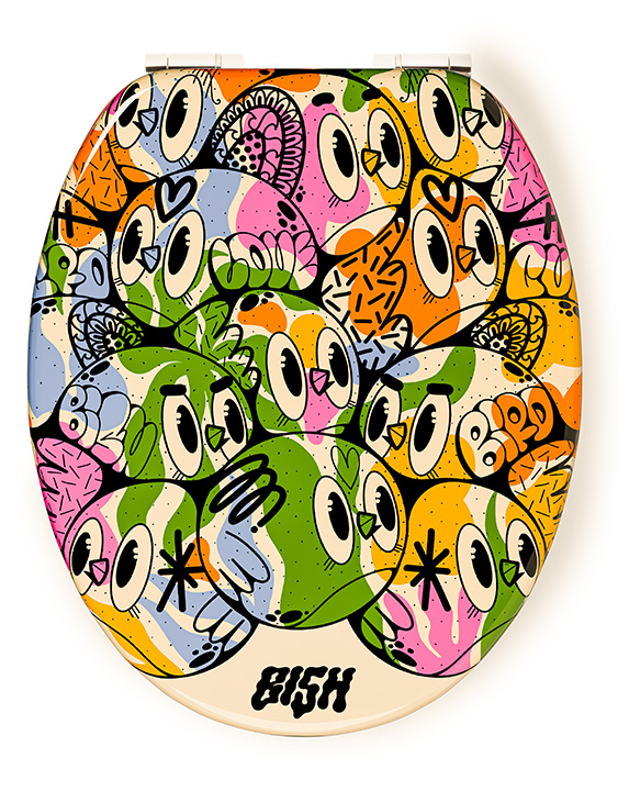 Fedele al suo universo pop, arricchito dai suoi iconici uccelli e da tonalità vivaci, Bishop Parigo reinventa ancora una volta l’asse del WC con un design unico.