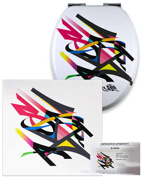 Questa magnifica creazione "Two Suns" dello street artist cileno Camilo Ortega, alias CORTE, realizzata per TohaaDesign, è un'esclusiva. Questa tavoletta per WC è un'autentica opera d'arte che porta la street art nei vostri spazi abitativi.